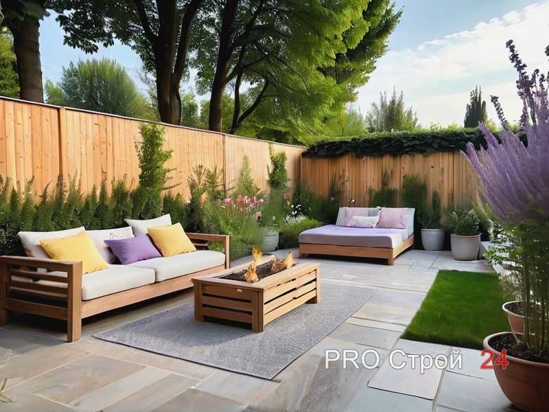 | Окружение растениями | Растения, такие как лаванда или розмарин, не только украсят территорию, но и создадут приятный аромат. |